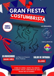 El día 01 de noviembre se realizó la 1° Fiesta Costumbrista del Conjunto Folclórico Nueva Aventura en la comuna de Pudahuel. Fue una fiesta llena de alegría, música y baile a la que